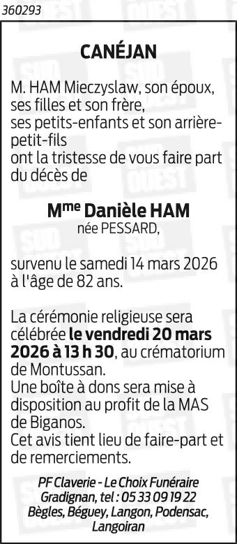 Danièle HAM Née PESSARD